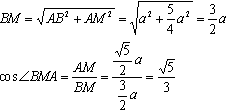 Для этого через точку М в плоскости ADD1A1 проведем прямую МК параллельно AD1. Угол ВМК - искомый. Вспомним формулу двойного проектирования. Пусть ВМ - наклонная, МК - прямая в плоскости. Тогда АМ - проекция. Запишем формулу: cos∠ВМК=cos∠BMA * cos∠AMK Обозначим ребро куба за а. Из прямоугольного треугольника АМD: ![]() Из прямоугольного треугольника АВМ: ![]() Из теоремы о том, что параллельные прямые отсекают на сторонах угла пропорциональные отрезки, заключаем, что точка К - середина AD. Из прямоугольного равнобедренного треугольника KDM: Найдем косинус угла АМК через разность углов АМD и KMD: cos∠AMK=cos(∠AMD-∠KMD)=cos∠AMD * cos∠KMD+sin∠AMD * sin∠KMD Осталось подставить найденные значения в формулу: ![]() Есть еще один способ: Из прямоугольного треугольника АВК найдем ВК: